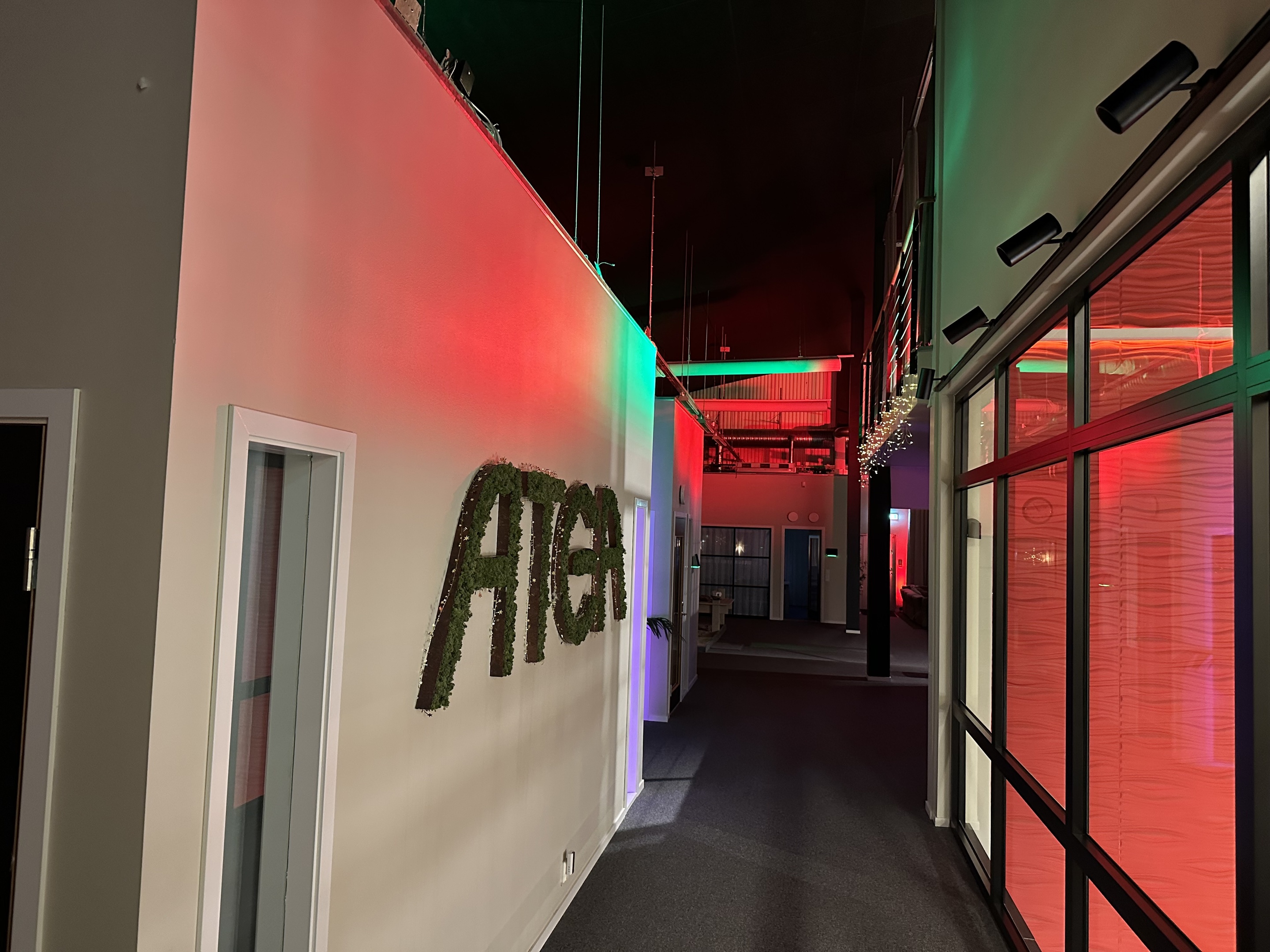 Marander står för ljussättning när Ateas Halmstads kontor har sin julavslutning för medarbetarna