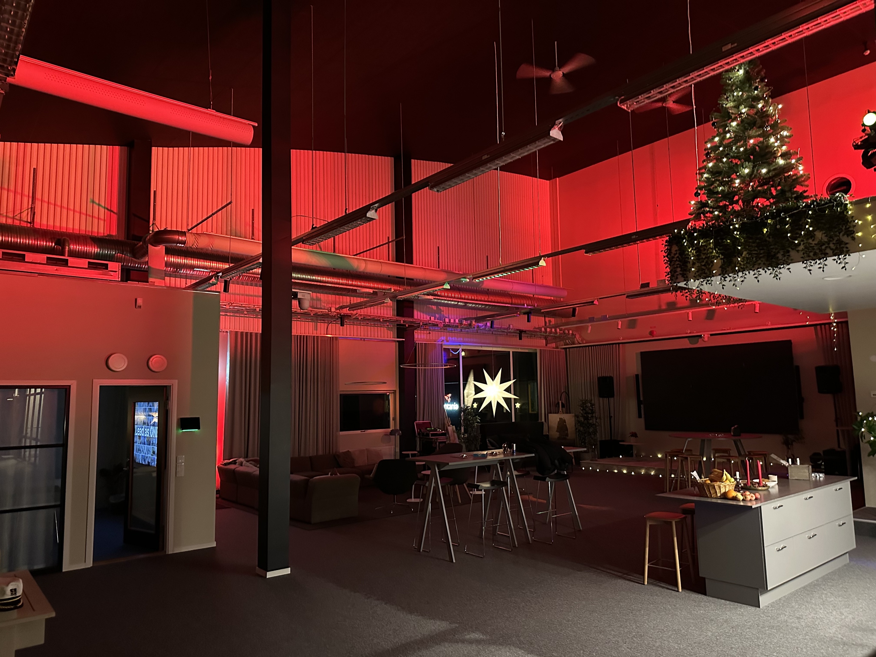 Marander står för Ljud och ljus till julfesten på Ateas Halmstads kontor.